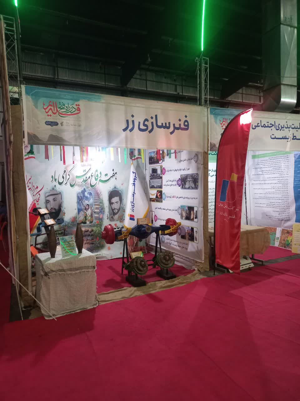 گفتنی است در این نمایشگاه شرکت فنر سازی زر در غرفه ای به مساحت 16 متر و با نمایش محصولات تولیدی در زمان دفاع مقدس مانند نمونه خمپاره 120 میلی متری به جبهه های حق علیه باطل مشارکت داشته، که مورد استقبال بازدید کنندگان از غرفه فنر سازی زر گردید.